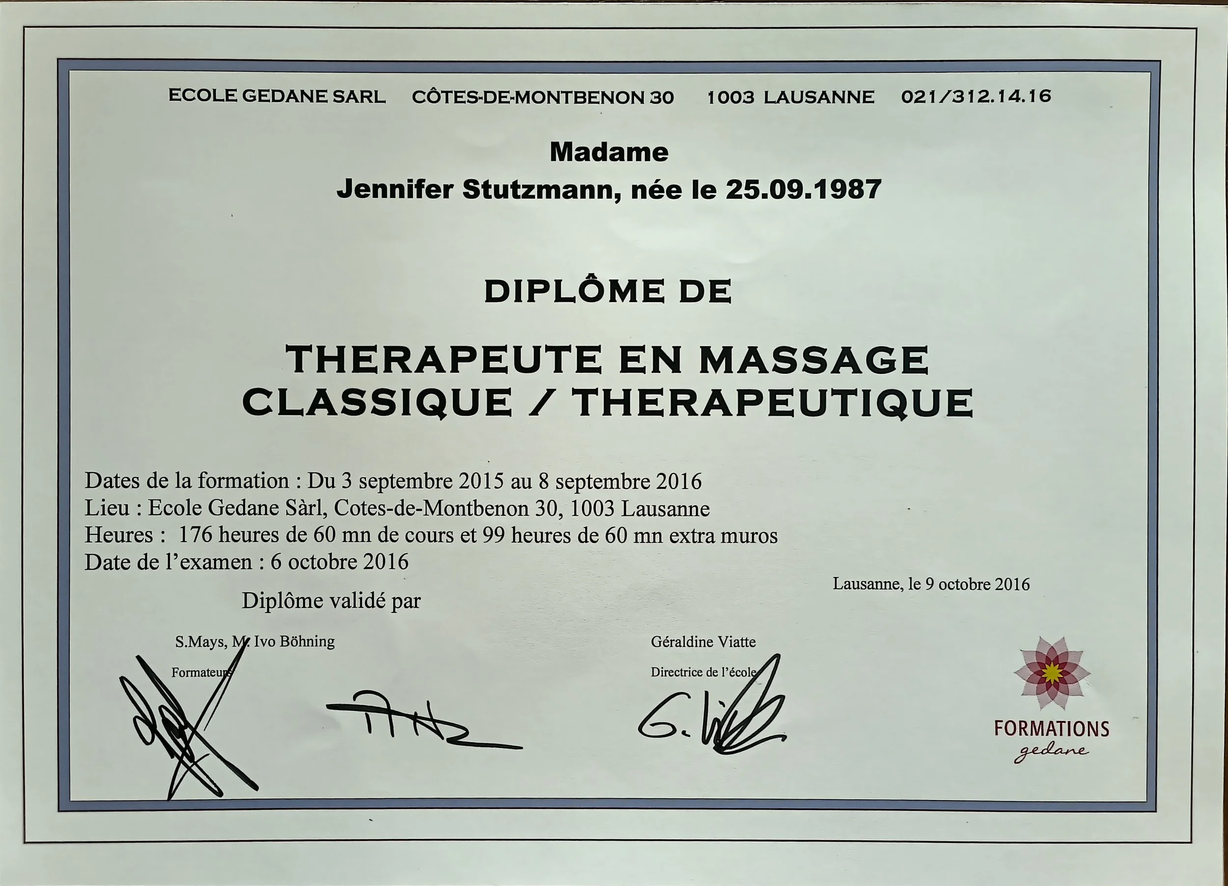 Diplôme thérapeutes en massage classique et thérapeutique - 2015 à 2016